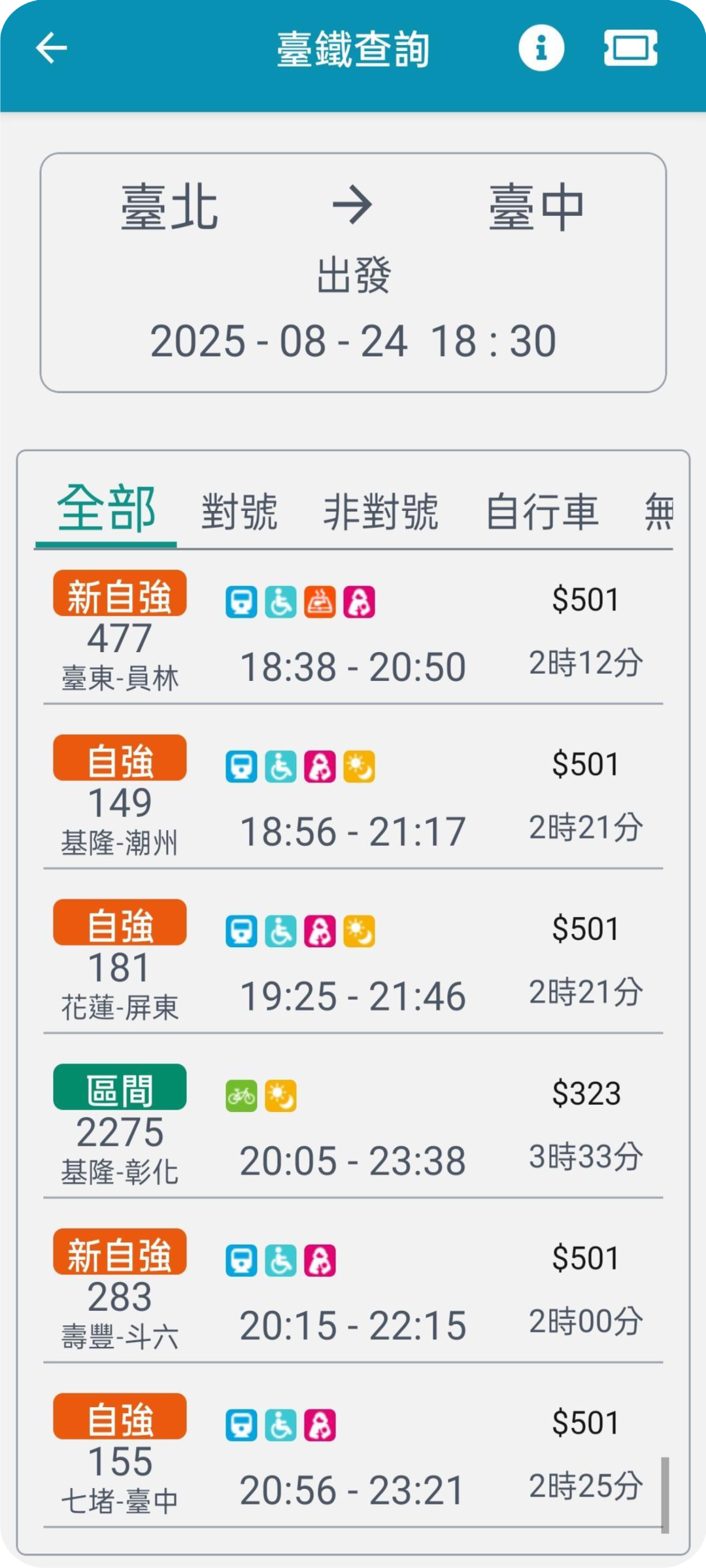 提供台灣各縣市公車、客運路線及自行車資訊! 台鐵、高鐵時刻表查詢服務,簡單快速!